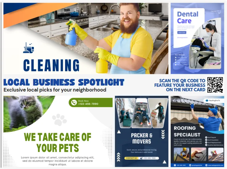 Your business gets featured on a bold, oversized postcard delivered directly to thousands of homes – with no competition, no tech